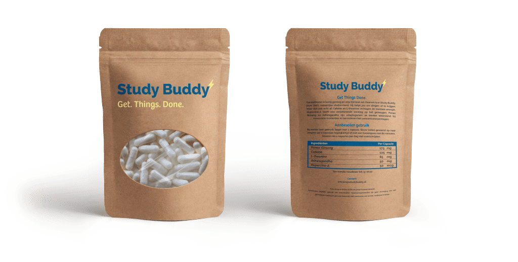 De stoffen in Study Buddy verhogen je focus vanaf 30 minuten tot 5 uur na inname. Hierdoor studeer je effectiever en krijg je meer gedaan.